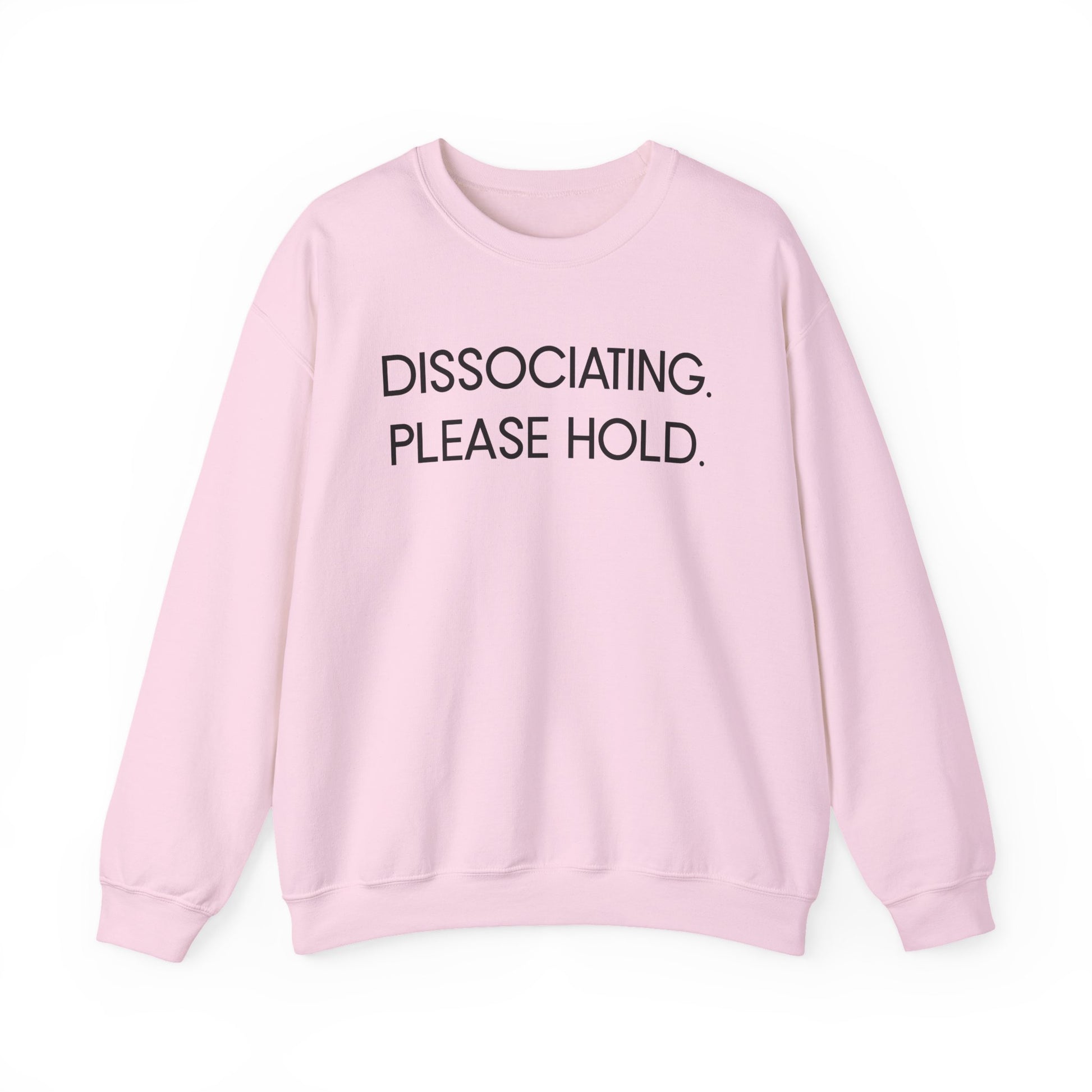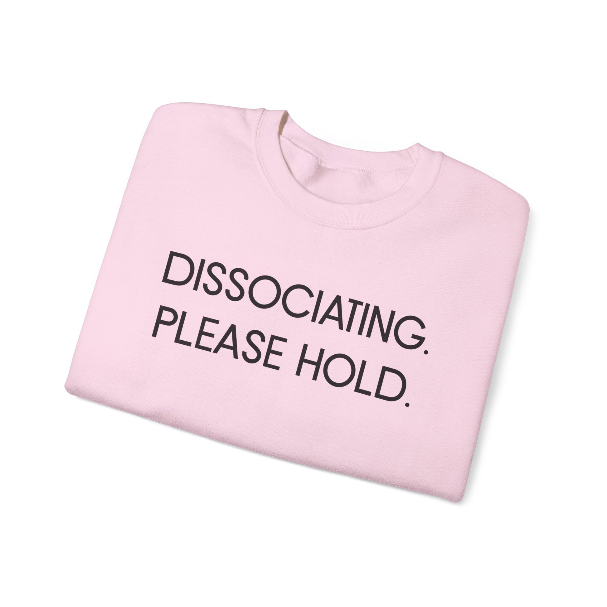 "Dissociating, Please Hold" Minimal Mental Health Statement Crewneck Sweatshirt